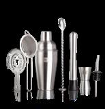 2: Cocktail set 7/1, nehrđajući čelik, shaker od 500 ml, pogodno za perilicu posuđa. Set čaša Noblesse 18/1, kristalno staklo, 6 čaša za whiskey 245 ml i 6 čaša od 295 ml te 6 čaša za long drink 375 ml, pogodno za perilicu posuđa. (39920171;45460359)