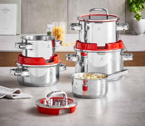 11: Pekač 8,5 l, Cromargan® oplemenjeni čelik 18/10, uz dodatne 3 funkcije poklopca - za pećnicu i serviranje te kao tava, otporan na visoke temperature pećnice, neutralan na mirise, pogodno za sve vrste štednjaka.