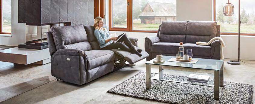 Garnitura za sedenje Caden, boja: tamnosiva, trosed s dve relaks funkcije, 208x99x93 cm, dvosed dimenzija: 174x99x93 cm. USB priključak i daljinski upravljač uključeni u cenu. (24240020/01) 119.999,