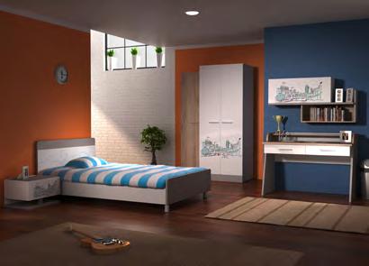 Soba za mlade Trend, boja: san remo/bela/siva. Ormar: 120x200x58 cm, krevet: 120x200 cm i noćni ormarić: 55x30x42 cm, radni sto: 120x90x60 cm, viseći element: 120x64x30 cm. Letvice i dušek uz doplatu (05860091/01)