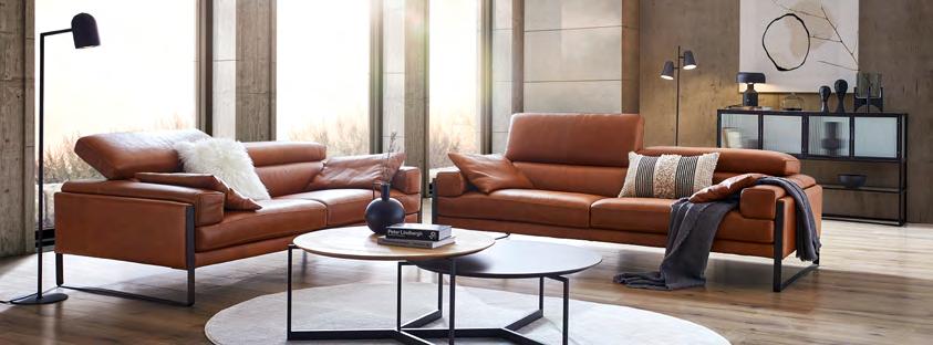 Sofa sa 2 sedišta Romeo, boja: tamnobraon, prava koža, sa mogućnošću podešavanja naslona za glavu, bronzane nogare, dim. 202 x 67 x 105 cm. Trosed, 3 sedišta, unut. opruga sa kaiševima, penasti materijal, dim. 222x67x105 cm (07720007/20-21)