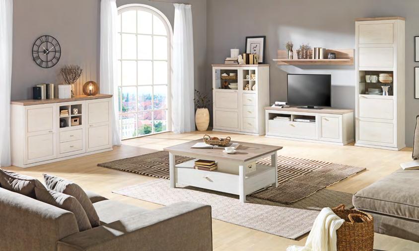 Regal za dnevni boravak Camron, boja: dekor bora/siva, 329,4x209,2x50 cm. Komoda , 2 vrata, 2 fioke, 160x88,3x42,5 cm 38.999,- 26.999,- RSD. Pomoćni stočić Camron, 2 fioke, 65x65x46 cm. 16.999,- 11.899,- RSD. Stočić za kafu Camron, 2 fioke, 110x80x45 cm. 24.999,- 17.499,- RSD (00030001/01-03,47)