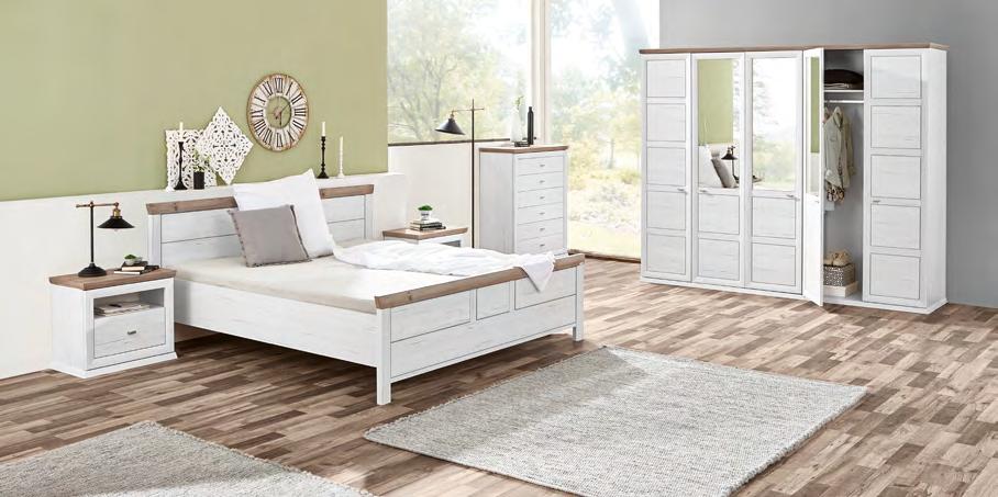 Spavaća soba Camron, boja: bela/siva, SoftClose sistem. Ormar sa ogledalom, 5-krilni, 6 polica, 3 ogledala, 2 šipke za odeću, dim. 255x209x60 cm. Noćni ormarić, 1 fioka, dim. 62,8x55x38 cm 9.999,- 7.999,- RSD. Krevet, dim. 205 x 94 x 207 cm, ležaj dim. 180 x 200 cm 32.999,- 25.999,- RSD. Letvice i dušek uz doplatu (00030001/04,06,05)