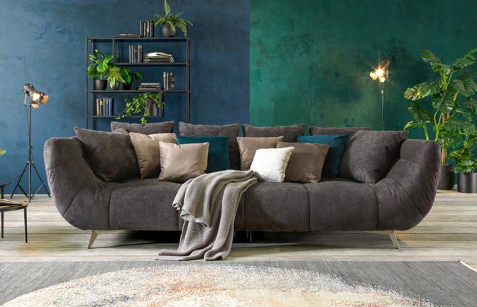 Mega sofa Fellini, boja: crna, dim. 300x95x133 cm, sa jastucima za leđa i dekorativnim jastučićima. Tabure, 120x43x70 cm (06470043/01-02)