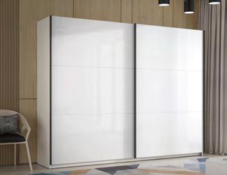 3: Ormar sa kliznim vratima Lausanne Plus, boja: bela/bela visoki sjaj, crne ručke, 3 police, 3 šipke za odeću, dim. cca. 270x210x61 cm (06870186/24)