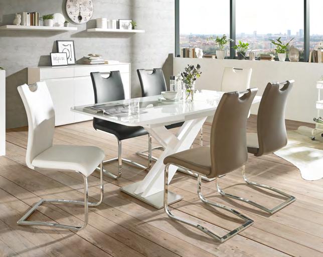 Trpezarijski sto Martin, MDF, boja: bela, sigurnosno staklo 5 mm u beloj boji, podnožje od nerđajućeg čelika, razvlačenje,dim. 140-175 x76x85 cm, nosivost do 60 kg (19710060/01)