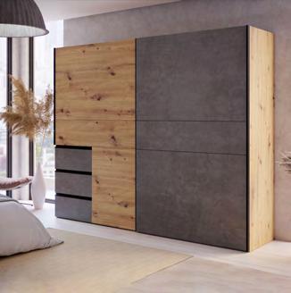letvicama i sandukom za posteljinu 4: Ormar s kliznim vratima Winn 2, boja: artisan hrast/tamnosiva, 3 fioke, 3 police, 2 šipke za odeću, dim. 200x210x61 cm. Dostupna i u dimenziji: 170x210x61 cm 37.999,- 29.999,- RSD (06870457/01-02,11)