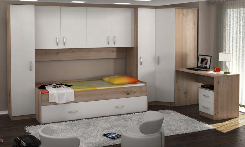 Soba za mlade Rok, prakticno rešenje za male prostorije, sa 2 ležaja dekor artisan hrast/bela, osnovni sastav: 285x200x94 cm, krevet 90x200 cm. Letvice i dušek dostupni uz doplatu. Radni sto, 120x75x56 cm 14.999,- 11.999,- RSD. Ugaoni ormar, 84x200x84 cm 27.999,- 21.999,- RSD (05860046/06-08)