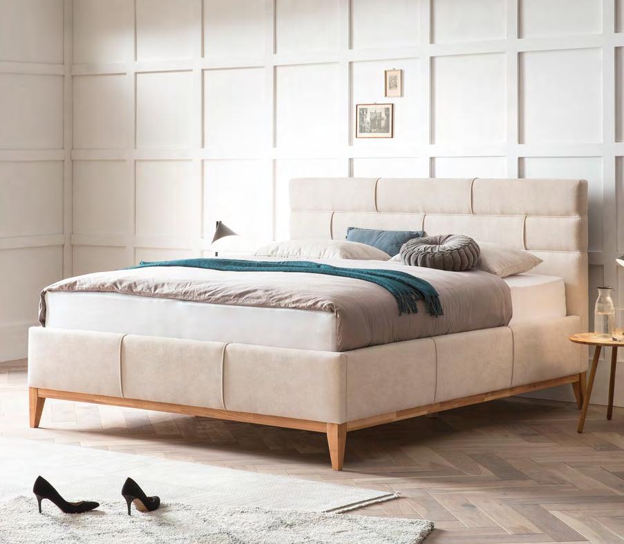 Tapacirani krevet Jupiter, hrast masiv, boja: bež, dim. 200x120x220 cm, ležaj dim. 180x200 cm, sanduk za posteljinu i 5-zonska letvičasta osnova (28 letvica) uključeni u cenu. Dušek dostupan uz doplatu (08400051/01)