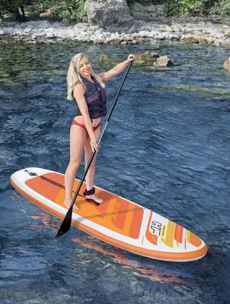 materijal, jednostavan za spremanje, uključena središnja peraja za poboljšanu kontrolu na vodi, neklizajuća podloga, prsten od nehrđajućeg čelika za pričvršćivanje i pristajanje, praktična ručka za jednostavno nošenje