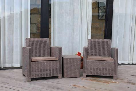 Fotelja (2 kom): 62x64x86cm Sto: 120x70x80cm Konstrukcija od punog drveta.