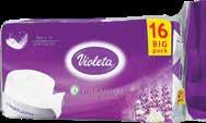 Toaletni papir Violeta 16/1, 3slojni, bez boje i mirisa ili lavanda (1kom=0,28€)