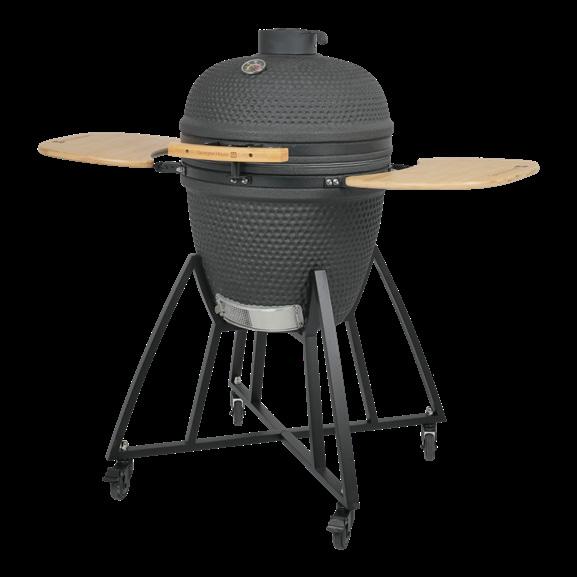 Keramička posuda za vatru, posuda za uklanjanje pepela, otvor za vazduh od livenog gvožđa. FSC drška od bambusa i sklopivi bočni stolovi. Uključen merač temperature, postolje od nerđajućeg čelika sa 4 okretna točkića za zaključavanje. Dim: 120x130x74 cm. Prečnik posude 47 cm art. 67918