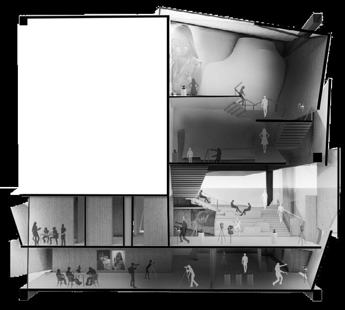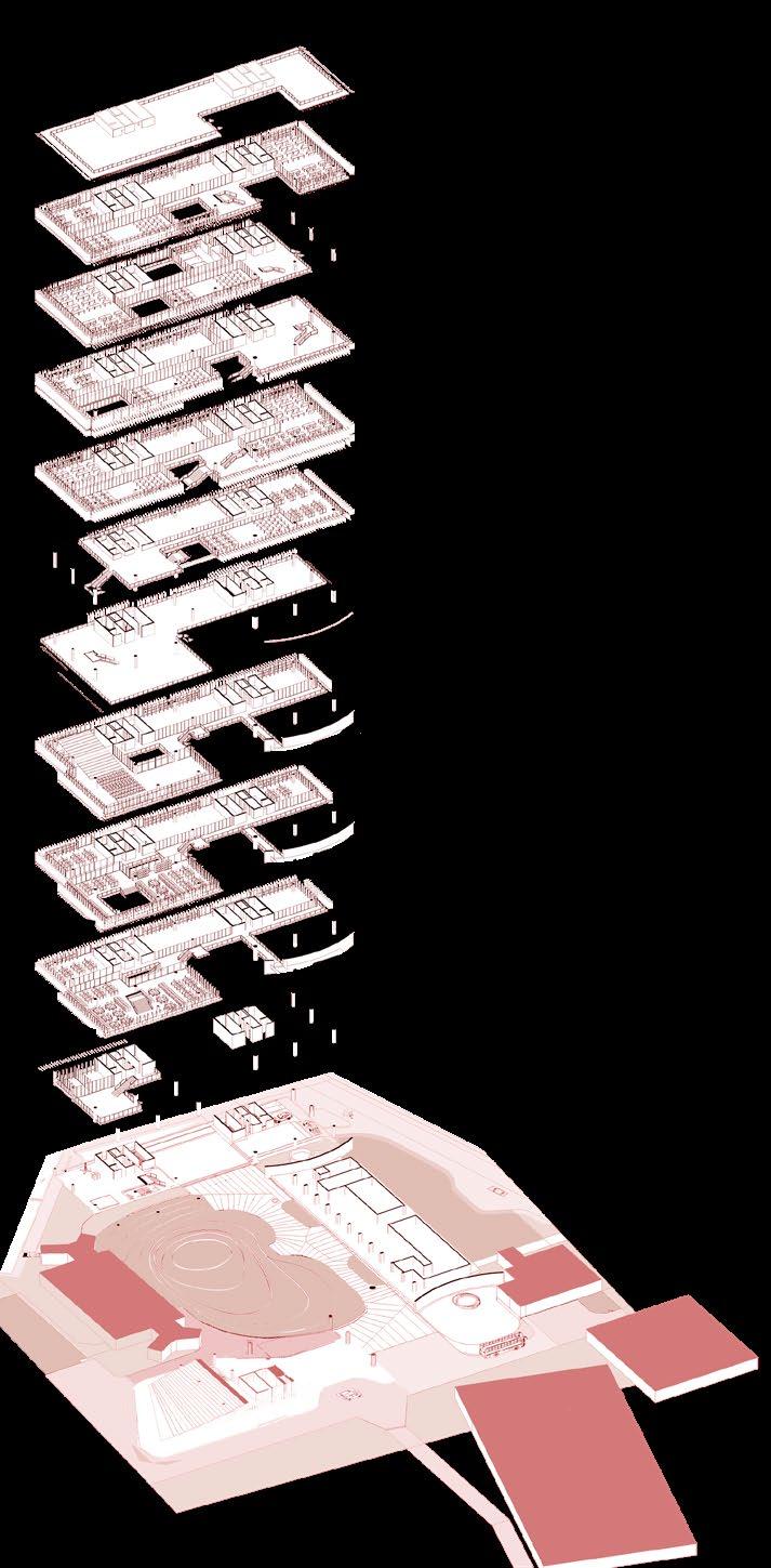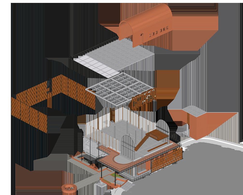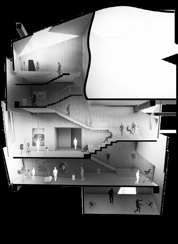 S N Museum Main Function Magnet Function Library + Art Cafe OutdoorCafe Child Library Philatelic Store Audio Visual Room Rest Room Office Room Axonometric View of the designed decision work Scaled Physical Model Ground Floor Plan 0’ 5’ 10’ 20’