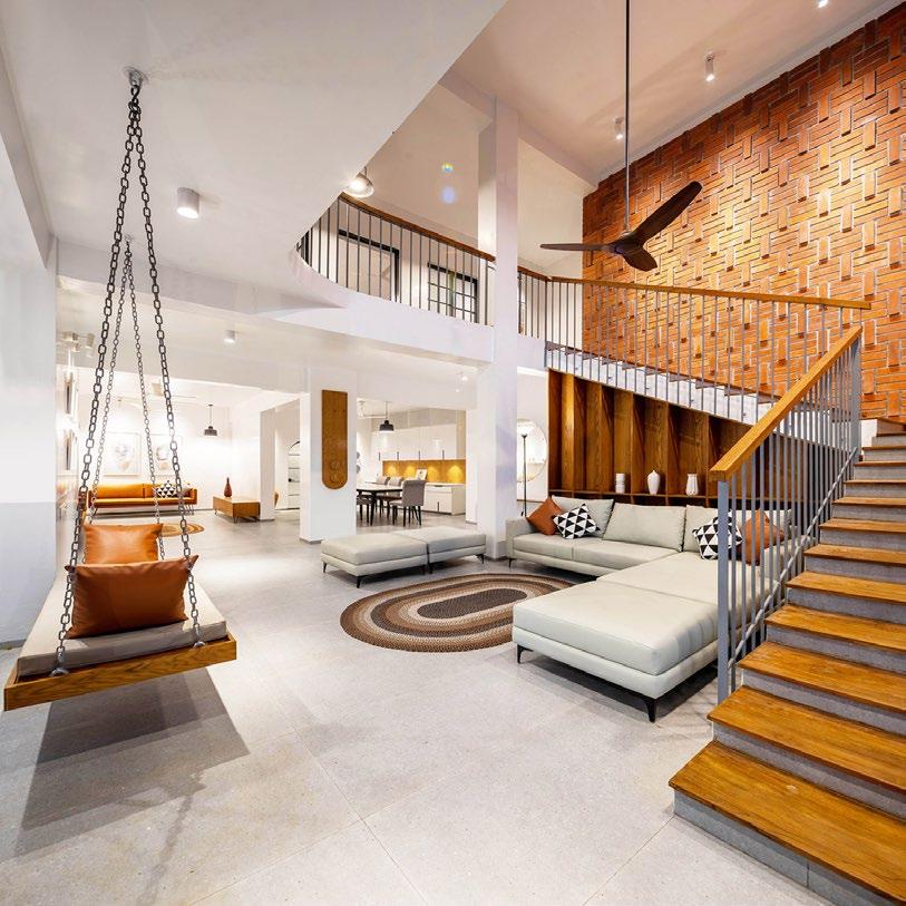 Firstly, we expanded shaded areas in the west and south retrofitting the structures considering the essential climatic considerations (sun and rain) of our region; for this, we provided large openings for proper lighting and ventilation in the house’s double height living room, dining and family space. Then we converted the shaded slab to usable large common varanda. For designing the exterior view we used low-maintenance materials and attempted to experiment with the modular nature of the bricks. We tried to devise a blend of ancient classical style with a touch of contemporary design to give the client the feeling of living in his village home. We transformed the interior of the ancient structure in light hues so that it may be well-lit even with the low light it receives from the east, as we were unable to modify the eastern portion of the structure because it could have an adverse effect in the future. Throughout the day, the curved brick walls play with the sun’s light, and at night, the entire home serves as a lamp for the compound. This project was effective in informing the public that it is not always required to demolish an entire structure and build a new one; rather, minor adjustments with delicate crafted touch as an architect in accordance with fundamental climatic considerations can create a solemn atmosphere for both clients and surroundings.