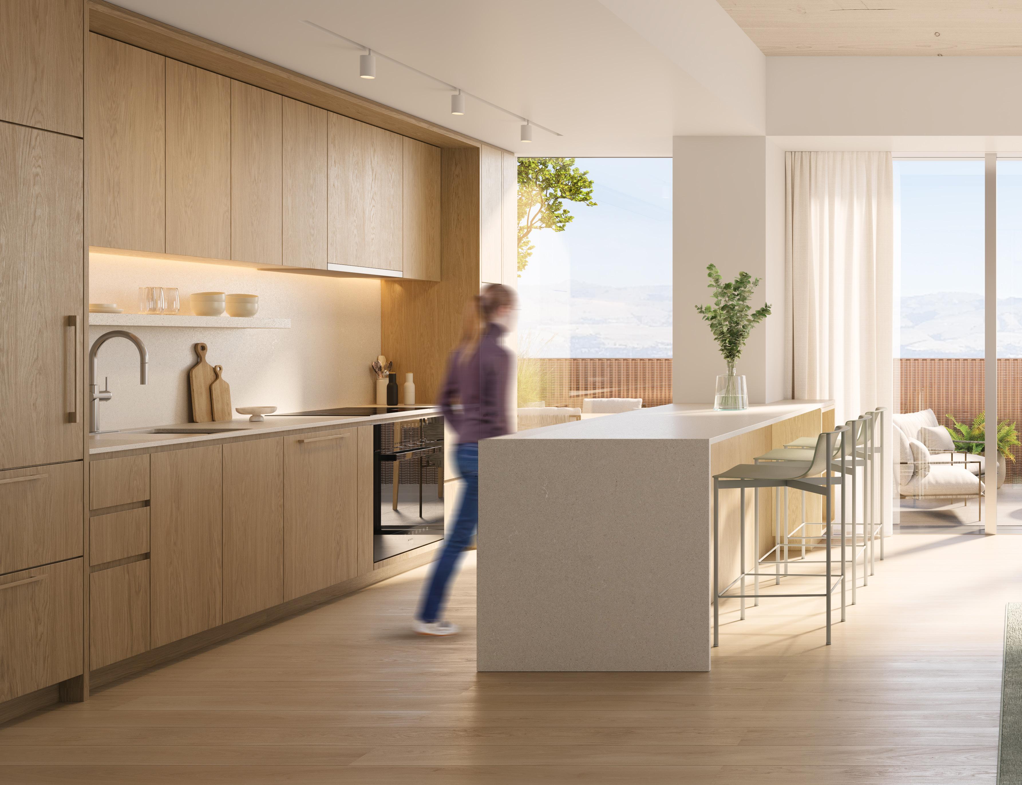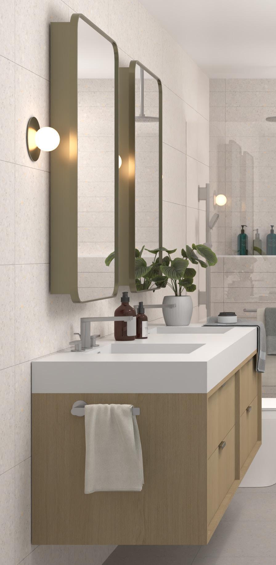 Nabr provides enhanced air filtration: a hospitalgrade air-quality filtration system including HEPA filters (which carry a MERV-17 rating), real-time monitoring of indoor air quality, and a sealed building envelope, which prevents outdoor pollutants from entering interior spaces. All kitchens and bathrooms are vented to the outside.