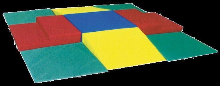 Variabilní sedací souprava VARIO pro výuku, hraní, stavění a ležení. Kombinace rovnostranných trojúhelníků o straně 50 cm skýtá nepřeberné množství sestav. Provedení – látka kortexin červená, modrá, zelená, žlutá. Kostra lamino, sezení tuhý molitan. Stříbrné kovové nožky o průměru 50 mm a výšce 8 cm. Celková výška prvků je 34 cm. OMYVATELNÁ LÁTKA.