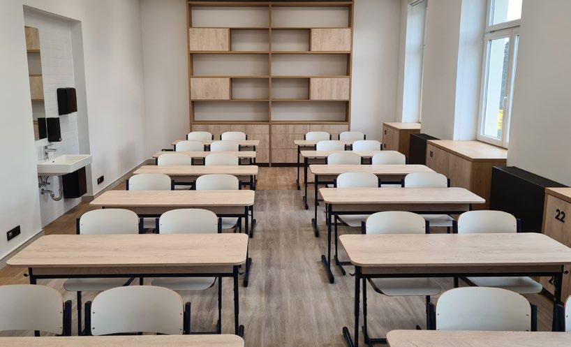 Deska katedry 1300 × 600 mm je vyrobena z lamina buk tl. 18 mm. Katedra a učitelská židle jsou ve velikosti č. 6 nebo 7.