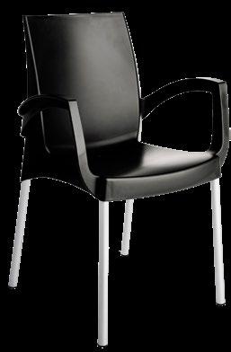 20 × 20 mm s povrchovou úpravou vypalovanou práškovou barvou (komaxit) - dezén stříbrný antik. Sedák o výšce 6 cm je tvořen z tužšího polyuretanu. Židle je vybavena plastovými kluzáky pro ochranu podlahy a plastovými dorazy proti poškrábání židle při stohování.