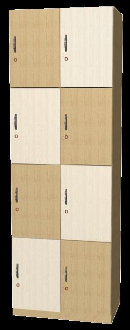 Lamino buk tl.18 mm. Skříně jsou opatřeny očkem pro visací zámek, větrací mřížkou, trojháčkem, 2 poličkami. Možnost objednání s barevnými dveřmi + 265 Kč za 1 dveře.