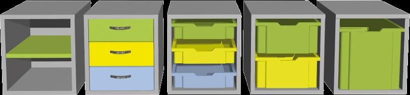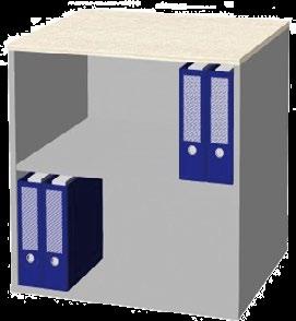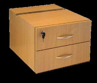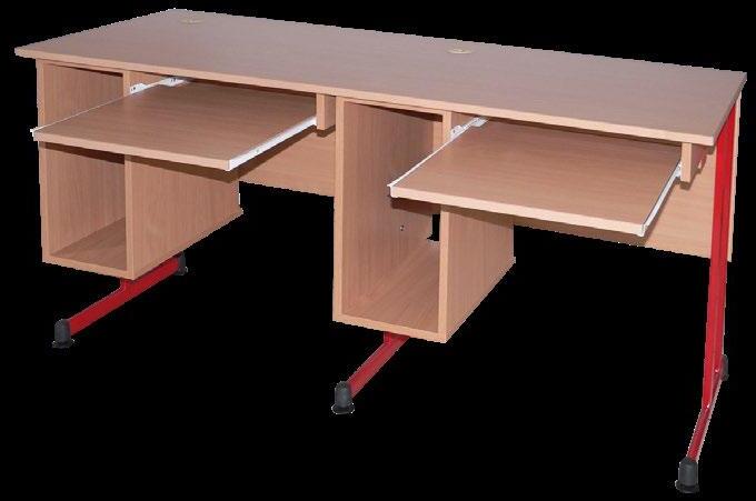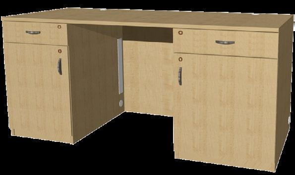 Učitelský stůl je na zadní straně opatřen krycí deskou v. 40 cm a lze jej doplnit o 1, 2 nebo 3 uzamykatelné zásuvky.