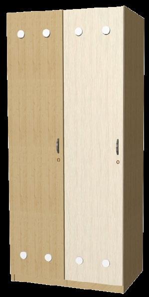 Lamino buk tl.18 mm. Skříně jsou opatřeny očkem pro visací zámek, větrací mřížkou, dvojháčkem, 1 poličkou. Možnost objednání s barevnými dveřmi + 150 Kč za 1 dveře.
