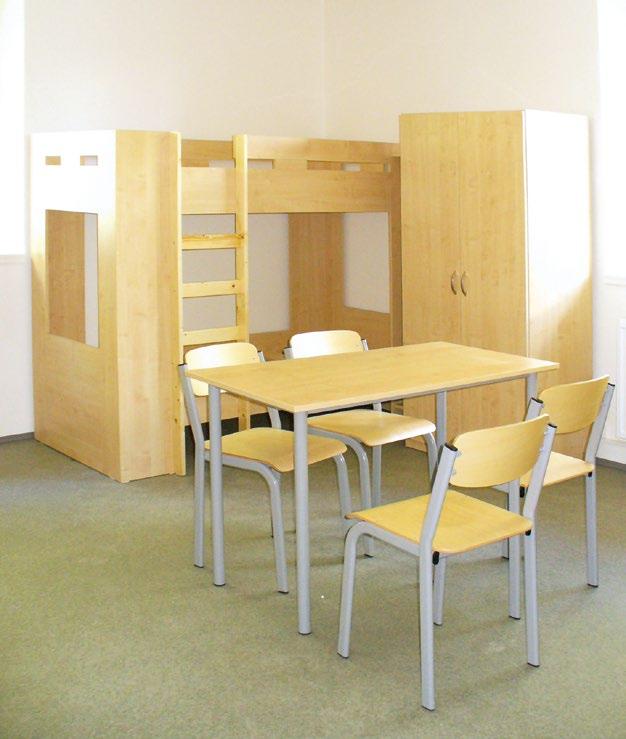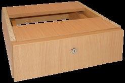 Katedra a učitelská židle Učitelský stůl je na zadní straně opatřen krycí deskou v. 40 cm a lze jej doplnit o 1, 2 nebo 3 uzamykatelné zásuvky. Deska katedry 1300 × 600 mm je vyrobena z lamina buk tl. 18 mm. Katedra a učitelská židle jsou ve velikosti č. 6 nebo 7. Opěrák i sedák u židle je čalouněný.