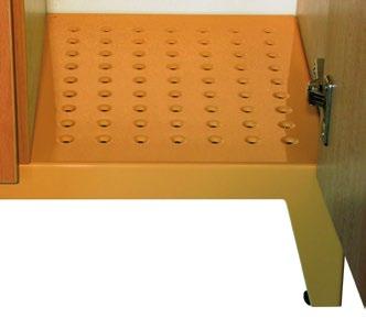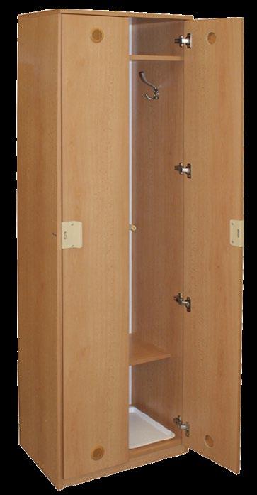 Plechový rošt. Lamino buk tl.18 mm. Skříně jsou opatřeny očkem pro visací zámek, větrací mřížkou, trojháčkem, 2 poličkami.