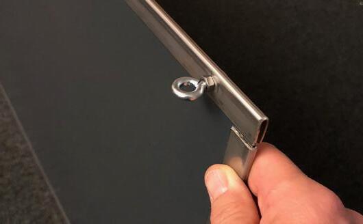 Udstyret med øjer til fastgørelse/alternativt ophæng på væg, og spænderemme til transport og opbevaring.