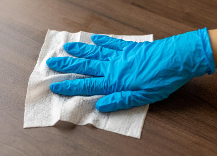 Take out a soaked SanoWipe and thoroughly wipe the surface to be disinfected several times. Wear gloves to avoid skin contact.
