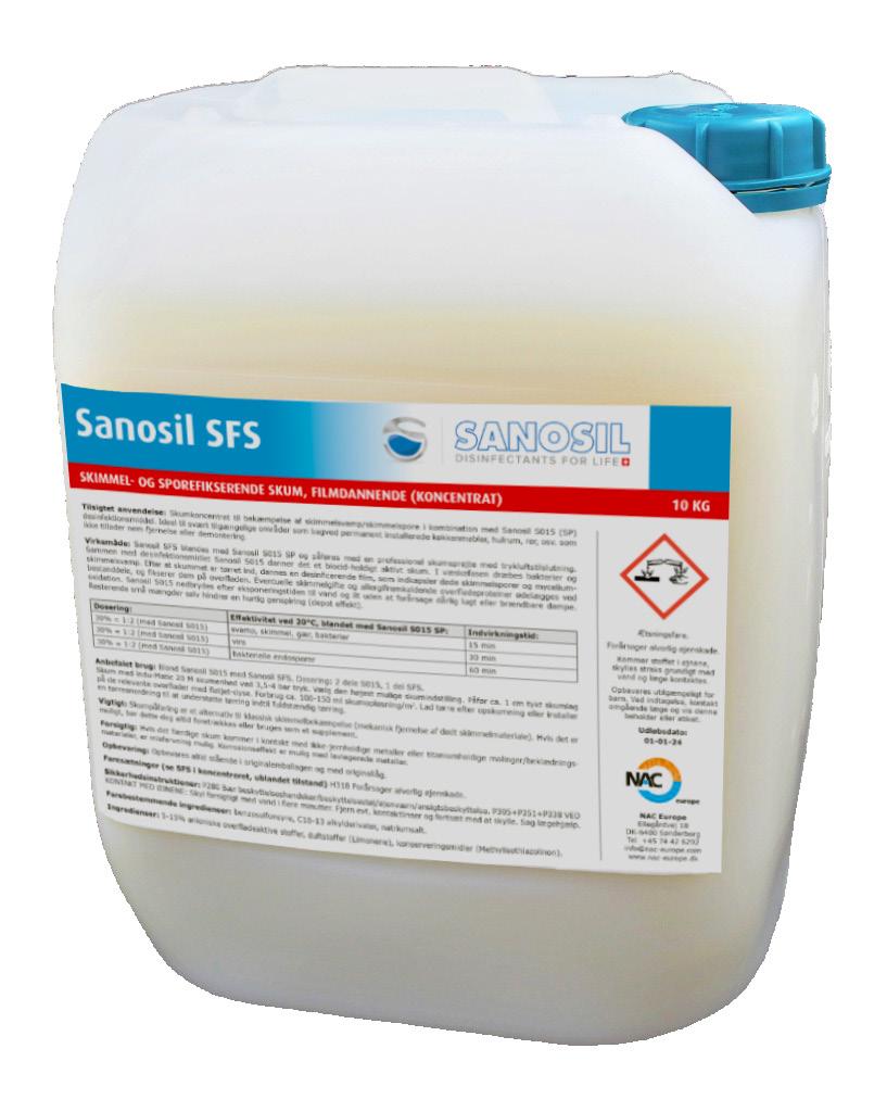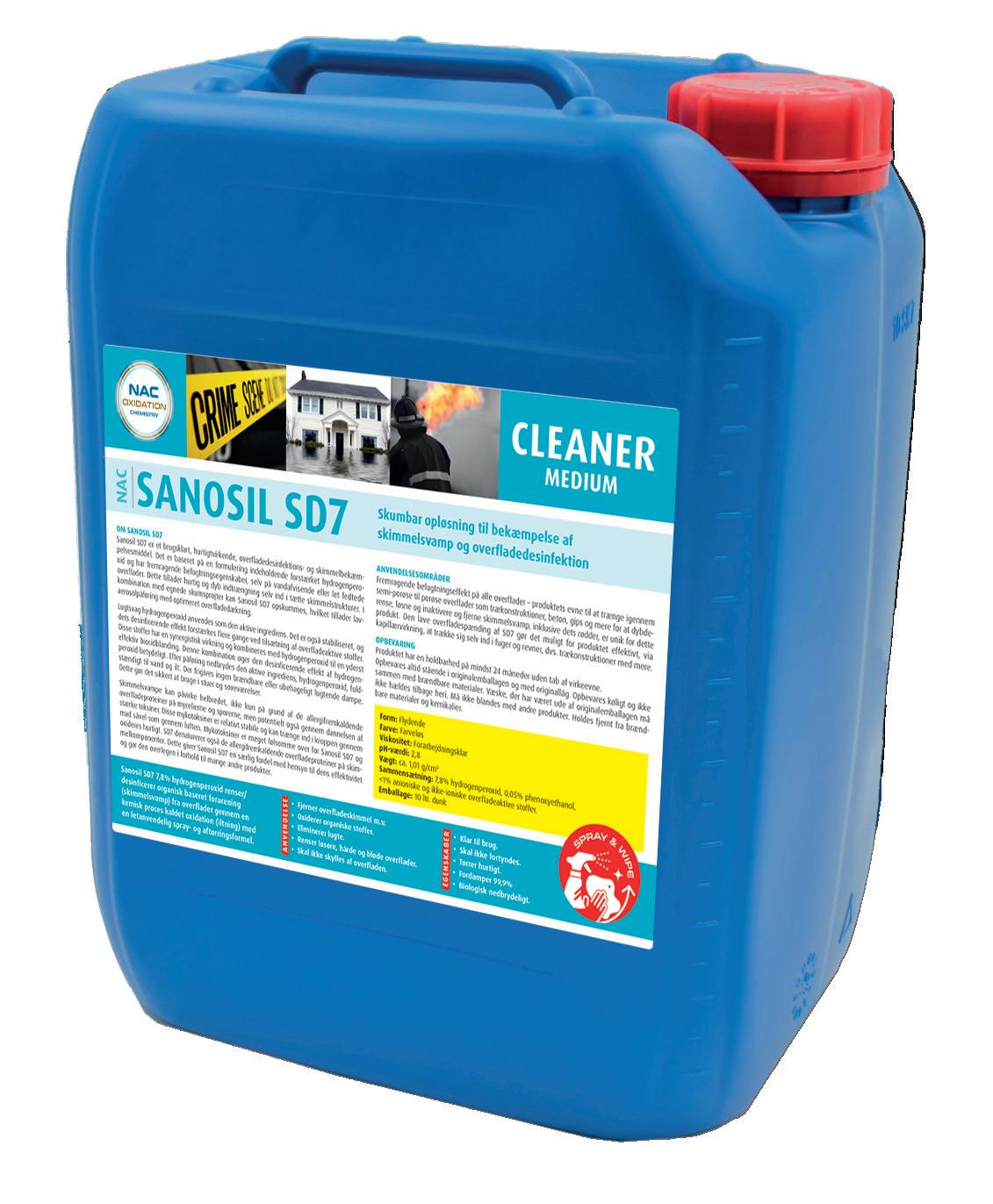 Sanosil SD7 consists of a 7.9% H2O2 ready to use solution with a specially formulated surfactant package boosting the cleaning power of SD7. SD7 can tackle both mild and severe mould-growth and is very pleasant to work with.