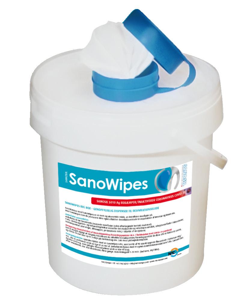 Sano Wipes are dry wipes in a practical dispenser bucket with a resealable lid. They are soaked in disinfectant before use and are then ready for use for several weeks. Soaked SanoWipes are ideal for the fast intermediate disinfection of smaller surfaces.
