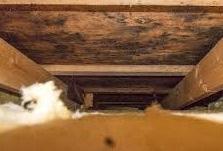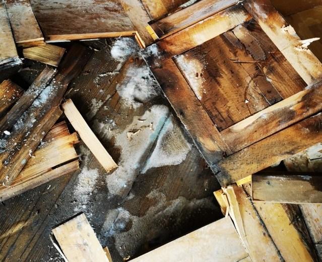 Wallpapered surfaces with loose/slight mould growth on the upper side.