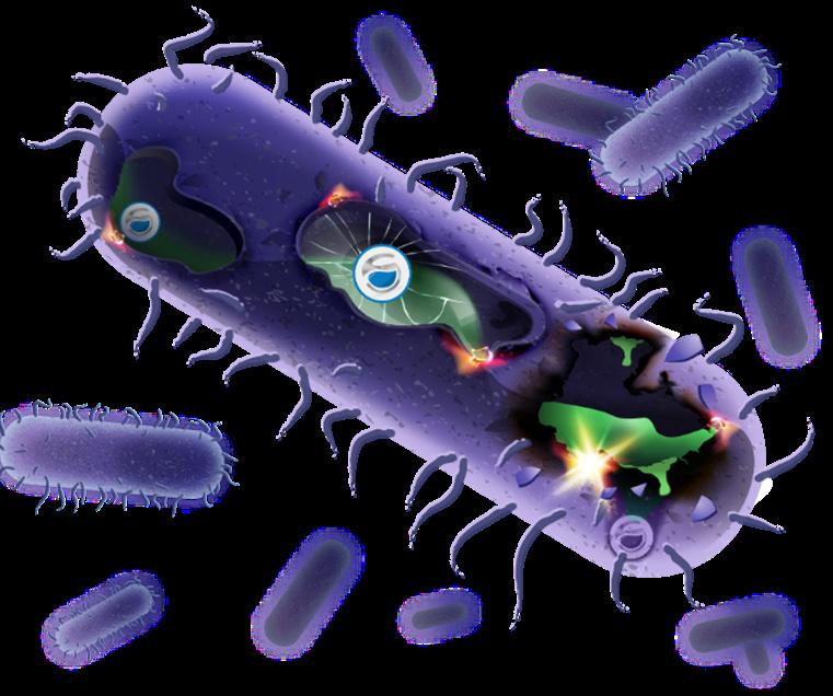 The oxygen released by hydrogen peroxide (1O2 /- O2) attacks the cell walls of microorganisms. Through oxidation (cold combustion), the cell walls are denatured and destroyed.