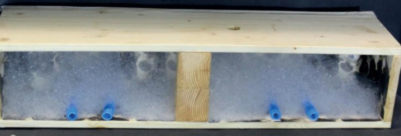 SD7 can be mixed with our new liquid SFS polymer/resin agent to spray as a thick foam into inaccessible cavities/confined spaces to inactivate mould and fix (bind) the inactivated mould spores to the surface. The SD7/SFS foam is very stable and thick, but still has the ability to fill cracks and joints in cavities/confined spaces. The thick and stable foam is being produced by a special foamsprayer, see details in this brochure.