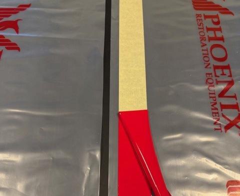• Malertape alene er ikke stærk nok til at bære vægten af polyfolie i længere perioder og kan svigte, hvilket kan forårsage, at inddæmningen kollapser.