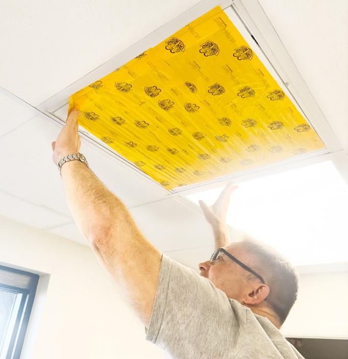 Den kan bruges til midlertidigt at fiksere belægninger som afdækningsfilt, plastfolie eller gulvpap for at beskytte gulve mod skader under saneringsprocessen.