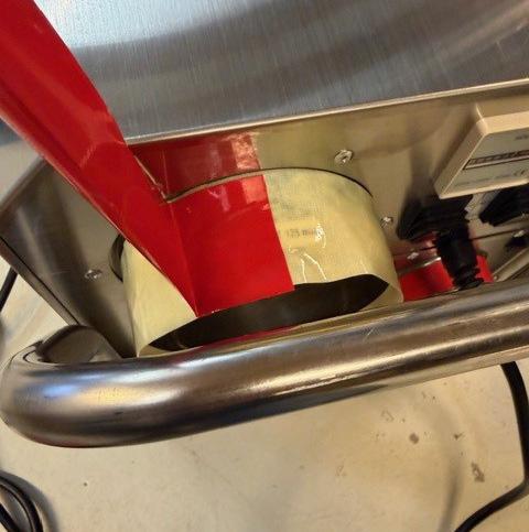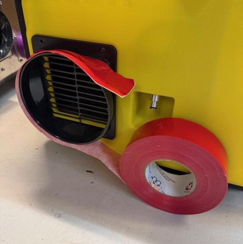 Billede 5: Rød tape vikles let omkring luftudtaget. Kør hele vejen rundt omkring luftudtaget med et lille overlap.