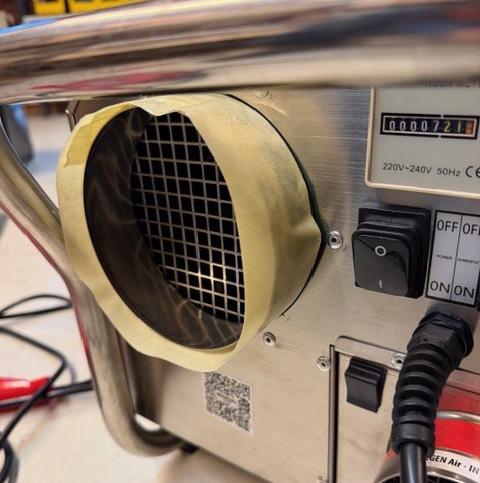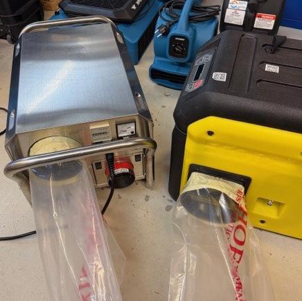 Billede 4: Slange/rørpose monteret. Sidder fast og er 100% tæt.Fjernes let igen efter afslutning på affugtningsprojekt.