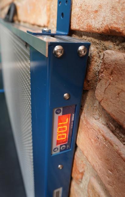 En innebygd temperatursensor gir panelet en automatisk av- og på-funksjon under tørkeprosessen. Hvis temperaturen er satt til anbefalte 70 °C, brukes strøm til denne temperaturen er nådd, og enheten slår seg deretter av. Hvis temperaturen synker under 70°C, slår enheten seg på igjen for å opprettholde den innstilte verdien. Den anbefalte tørketemperaturen stilles inn på et LCD-display på siden av panelet, og vi anbefaler å stille inn temperaturen til 70°C på en standard fuktet betong-/murvegg/pusset vegg osv.