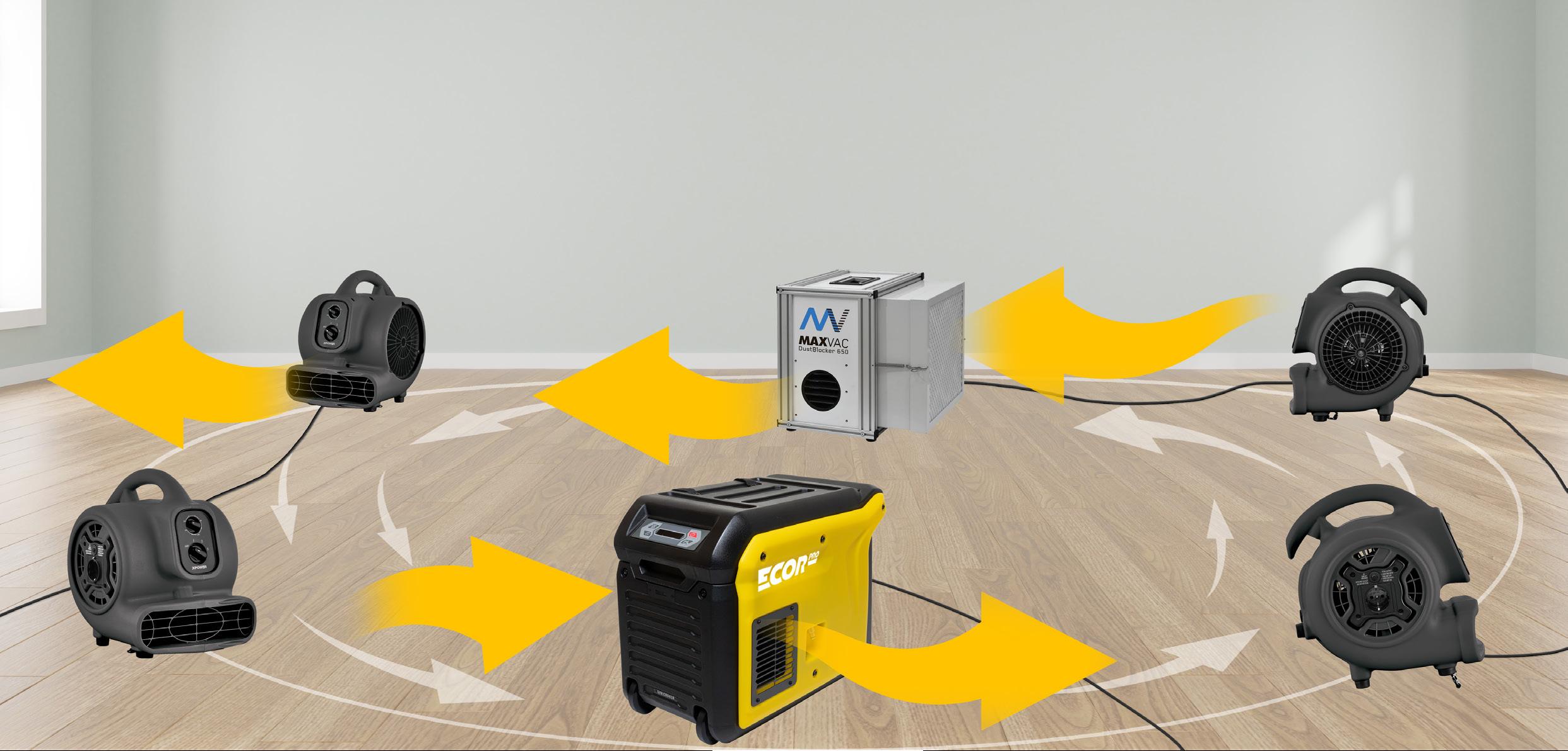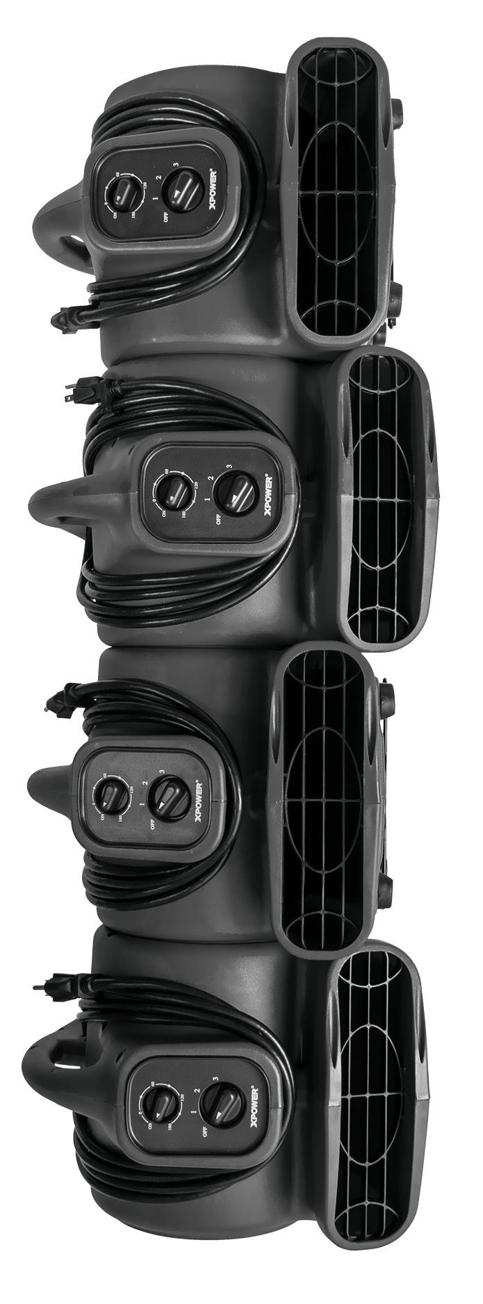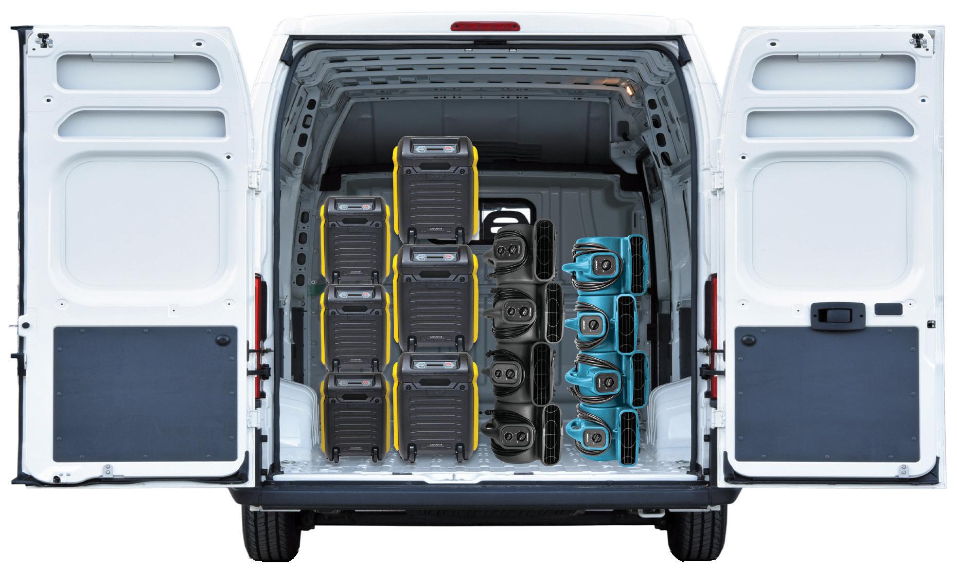 Både EcorPro kondensator-avfuktare och XPOWER-fläktar är extremt kompakta och stapelbara. Den kompakta designen gör det möjligt att transportera många enheter.