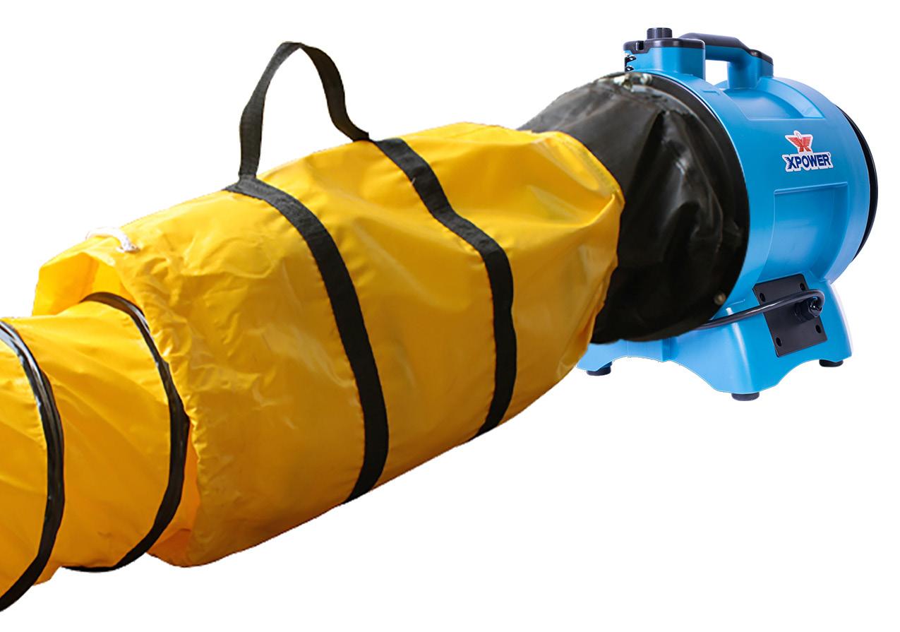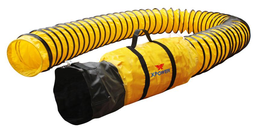 X-8 kan parres med en valgfri 8" (20 cm) PVC-kanalslange og X-12 med en 12" (30 cm) PVC-kanalslange, hvilket giver dig mulighed for at maksimere ventilationen selv i trange rum, der mangler naturlig luftcirkulation. Kanalslange med pose kan bestilles som ekstra tilbehør. Både indløb og udløb kan tilsluttes kanalslangen.