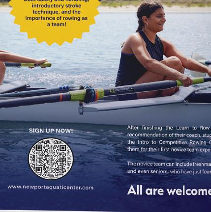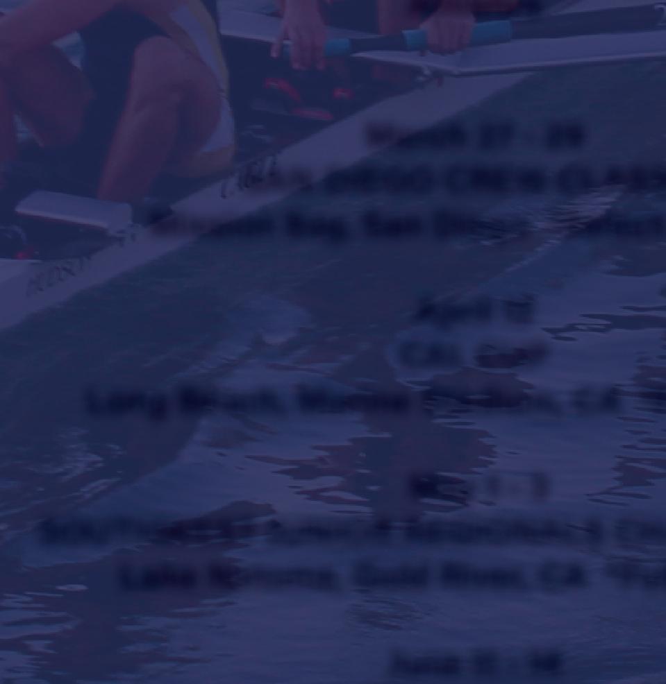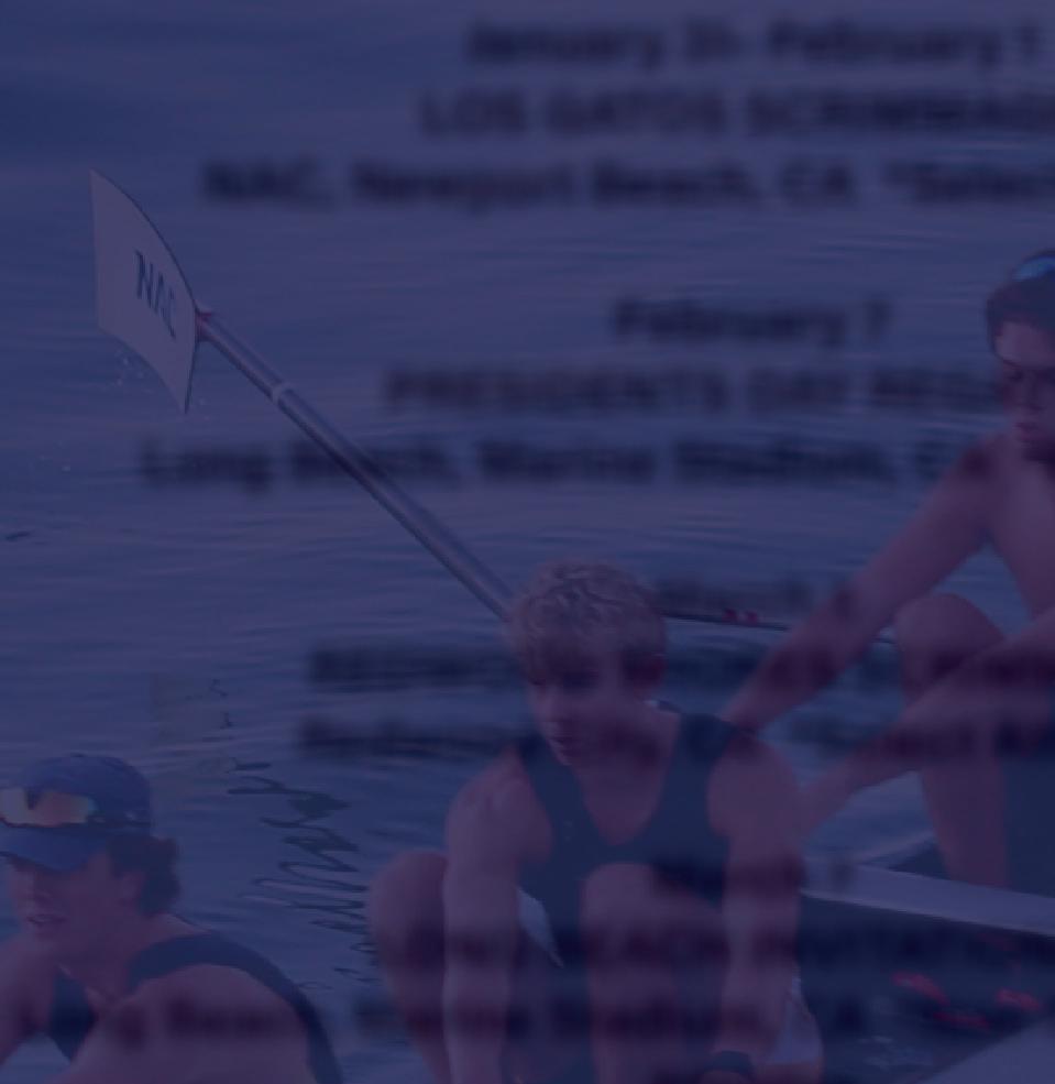 To the athletes: Newport Beach appreciates and respects your dedication both on and off the water. Whether you are a middleschooler discovering rowing for the first time, a high-school senior heading off to college, or competing at the national level, your passion and drive are shaping a promising future. The camaraderie of the junior rowing teams, the guidance of your coaches, the support of donors and the leadership of the board all come together to create an exceptional program.