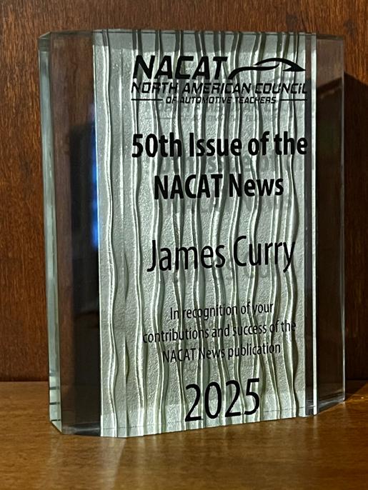 NACAT Board Chair, Steve Gibson, stated, "This year we celebrated a major milestone, and we couldn't have done it without one main contributor, James Curry. For those who don't know, James is the editor of the NACAT News. That publication you educators can't get enough of every two months is carefully curated by James." He concluded, "James, Thank you for all that you do and congrats on 50 issues! Cheers to many more to come!"