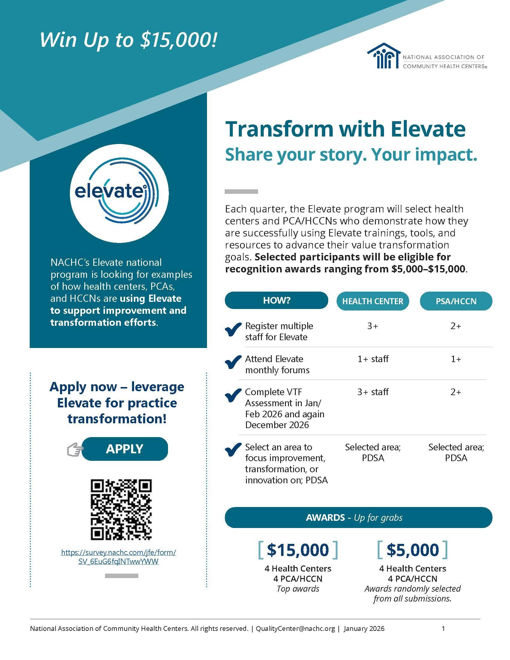 In January’s Elevate session, we launched Elevate 2026 and introduced the three engagement pathways: team/organization, individual learning, and grab-and-go resources. The session also emphasized the role of leadership in driving transformation and featured Dr. Arianna Keil of the North Carolina Community Health Center Association, who shared how NCCHCA uses the VTF Assessment to support reflection, collaboration, and action across member health centers.