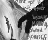 TheWorldbitesdownonmybody; theyareasnake,eternalandwise. TheyspeakinwhispersandIhear. Itraceasensitivefinger overeverysharptoothmarkandpray: Ilearn,Ilearn,Ilearn. IcannotrecoverallthatIhavelost. TheWorldunravelsandswallowsme, theyhugmeandIdon’tknowwhatIhavedone todeservefeelingtheirbreathing, ortheslowbeatoftheirpulse, orthewarmthoftheirgazeresting overmyinhibitedposture. Butjustastheyhuggedmemomentsago, theycontinued,ontohugthenextbody.