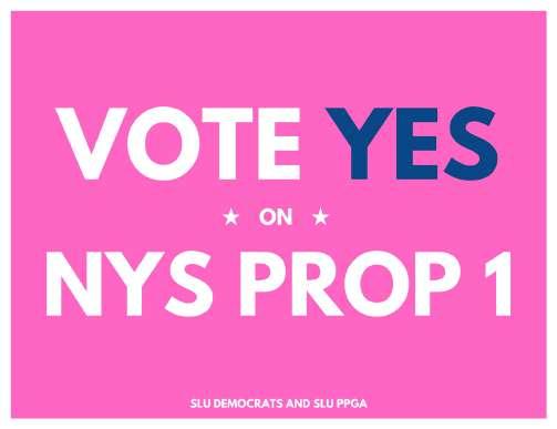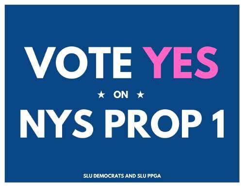 Eliza Brown and Cedar Young have been advocating for NYS Prop 1 at SLU since Spring of 2023. They have organized a reproductive rights discussion panel, written a Hill News article, held a discussion between multiple organizations, created custom “yard”signs,distributedinformational