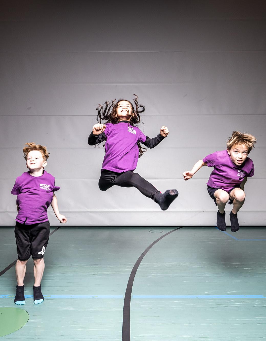 Die Kinder entwickeln die Kompetenz, die Unterschiede zwischen den Sprüngen in die Höhe und Weite sowie Sprünge mit ein- oder beidbeinigem Kontakt differenzieren zu können. Ein weiteres Augenmerk liegt auf der Prävention von Verletzungen und Haltungsschäden.