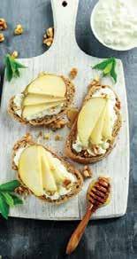 Ingredientes: 2 rebanadas gruesas de pan integral con semillas 2 cucharadas de queso cottage ½ pera lavada 1 nuez Miel