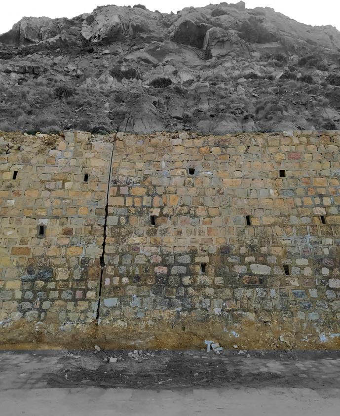 Alternation of sandstone and clay Rockslide Cliff cracking Retaining wall